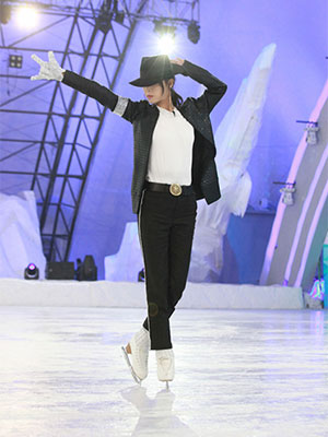 根據(jù)《跨界冰雪王》組委會(huì)的賽制,單期節(jié)目為個(gè)人秀。所以,本期明星營(yíng)員們迎來(lái)了首場(chǎng)個(gè)秀挑戰(zhàn)。張靜初作為邁克尓杰克遜的超級(jí)迷妹,穿上西裝帶上禮帽,腳踏滑冰鞋,活脫脫一個(gè)女版杰克遜,在冰上上演了一段傳奇故事。